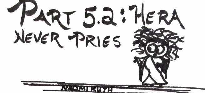 Although, I struggle with this part of the story because I can see both Hera and Zeus’ side of the story. Zeus is annoyed because Hera is trying to be involved in something that’s really none of her business and Hera is annoyed because Zeus is flirting with other woman and not treating her like an equal; Zeus is defensive because Hera is so aggressive, and Hera is aggressive because Zeus is so condescending… There is a lot going on there.